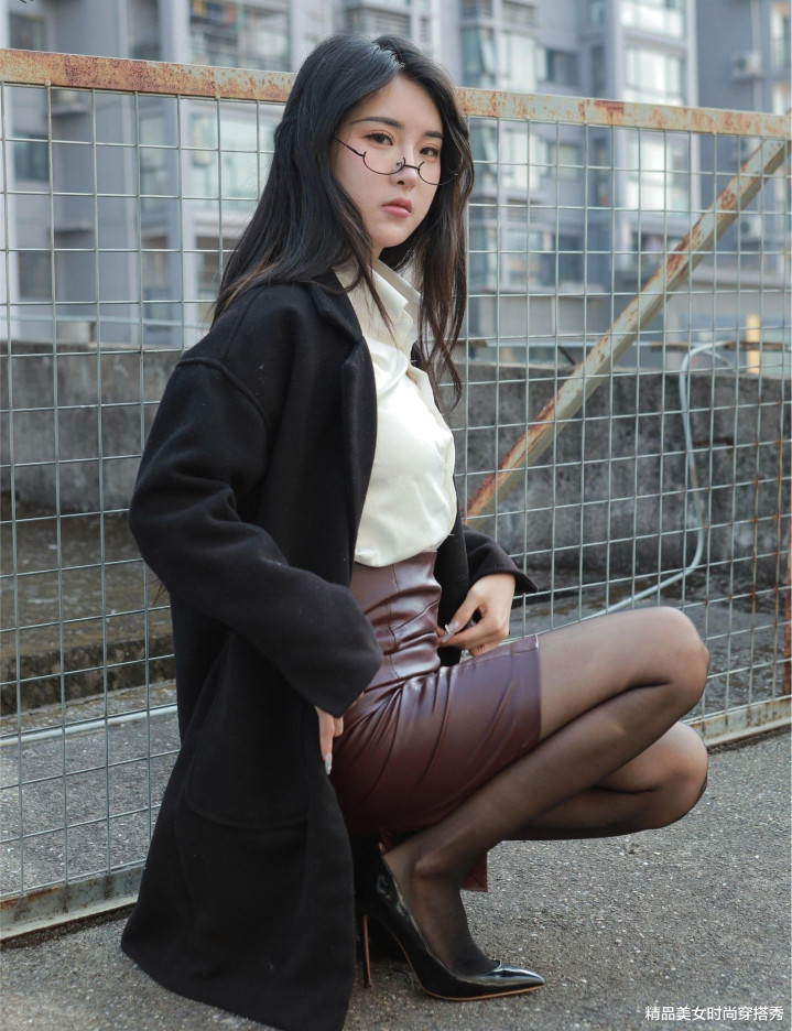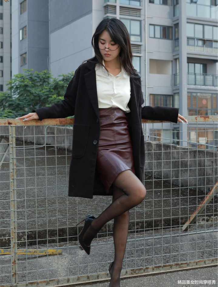 都市摩登风来袭! 黑大衣+酒红皮裙, 秒变时尚女王!